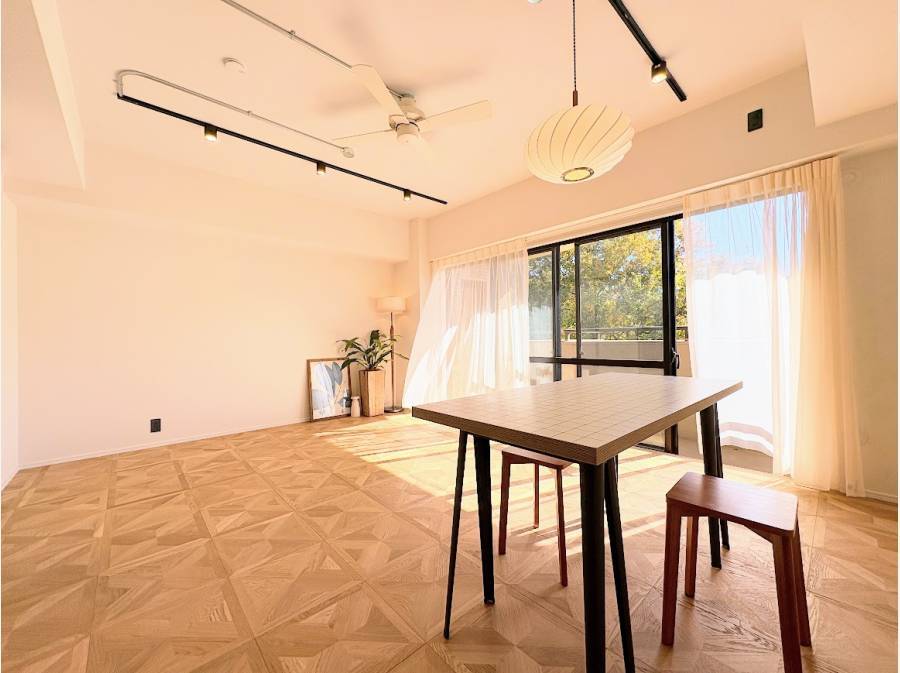2025年9月にリノベーションされた室内は、木の温もりを感じるモダンな空間に仕上がっています。14.5帖の広々としたLDKや四季を楽しめる広いバルコニーが、日々の暮らしをより豊かに彩ります。