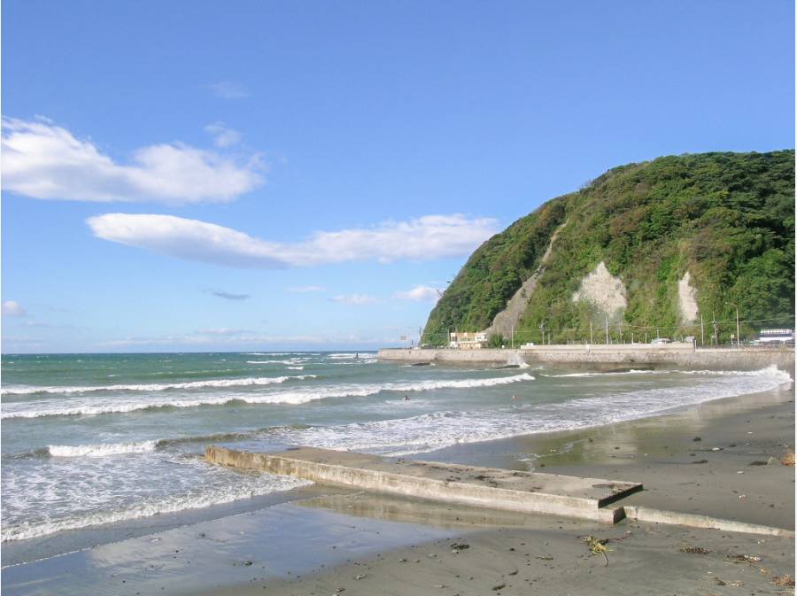 富士山を望む逗子海岸までは自転車で9分。