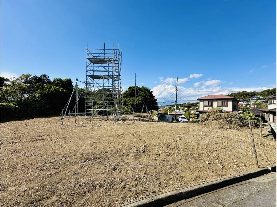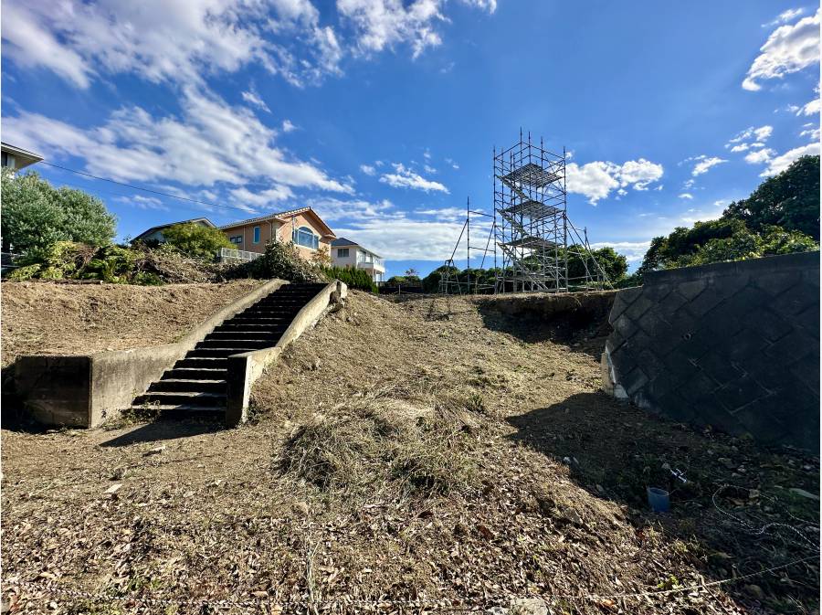 約610㎡の広々とした敷地は、三面道路に面しており、開放感あふれる立地です。さらに、遠くに海を望むロケーションが日常に特別なひとときをもたらします。周囲には閑静な住宅街が広がり、素敵な家々が立ち並ぶ魅力的なエリアです。