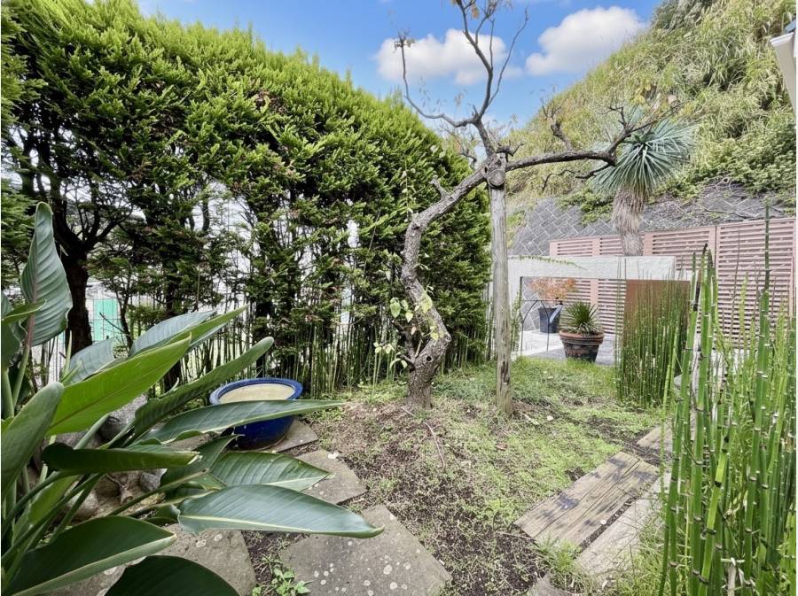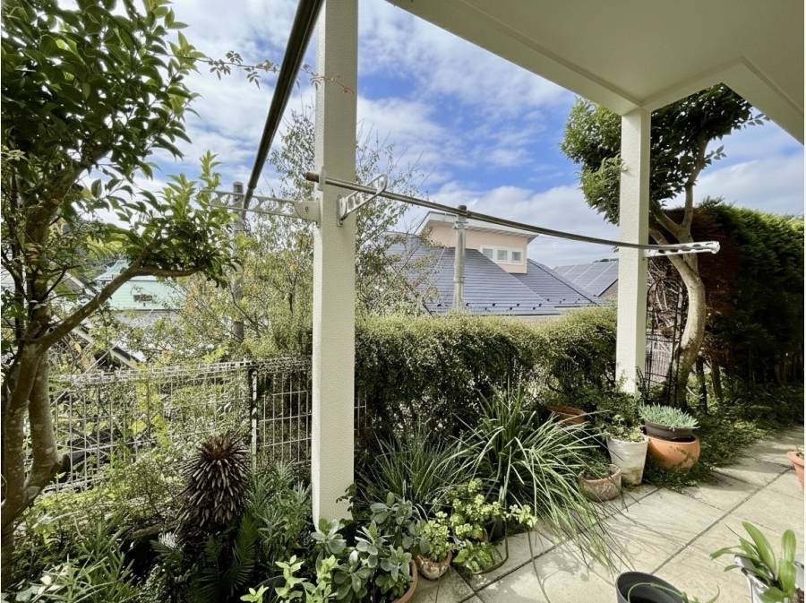 宅地が前面道路から上がっている為、玄関アプローチからでも開放的な眺望が広がります。
