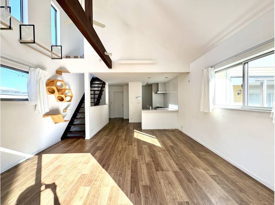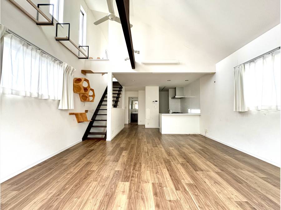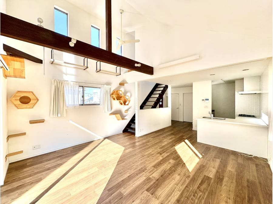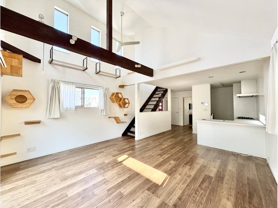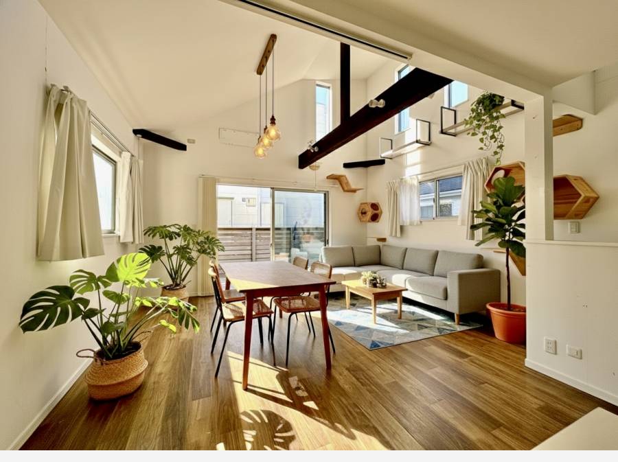 室内はこだわりながら丁寧に設計されており、吹き抜けの天井と開放的なリビングが魅力的。