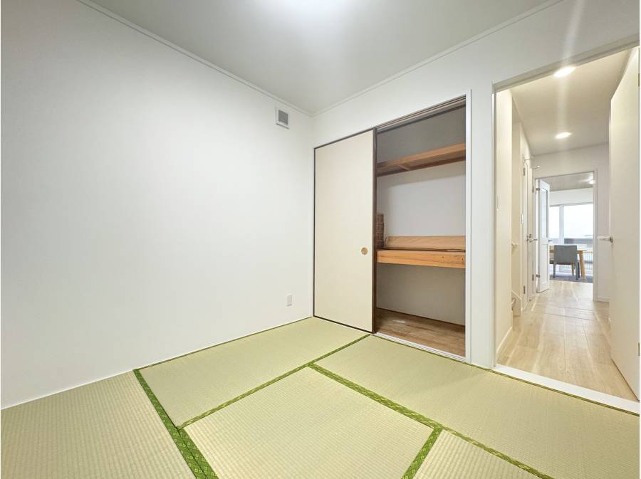 キッチンには食洗機を、浴室には換気乾燥暖房機を備え、毎日の家事を快適にサポート。1階には独立した和室があり、客間やお子様の遊び場としても活用できます。さらに、玄関ホールは広々としており、各居室には十分な収納が設けられています。