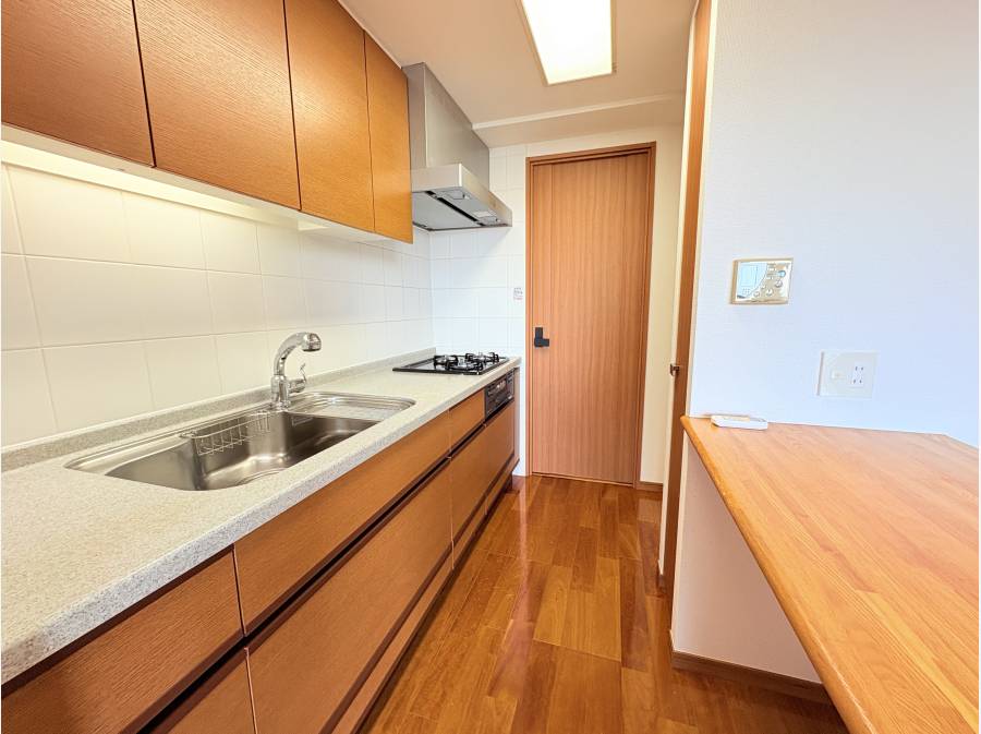 専有面積76.72㎡の3LDKは和室を備えた落ち着きある空間です。リビングダイニングには床暖房を設置し、カウンターキッチンにはガス3口グリルが付いており、利便性にも配慮されています。