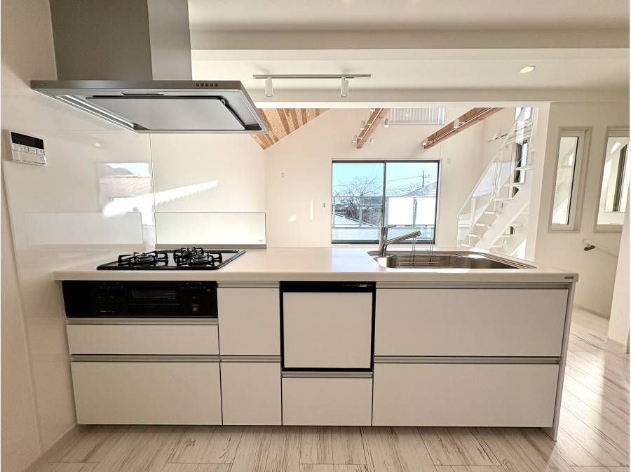 勾配天井のLDKは、光と木の香りが調和し、心がほっと和らぐ快適な空間です。ロフトの広さやパントリーの利便性も、日々の暮らしを心地よくサポートします。この機会にぜひ現地をご覧ください。お気軽に《鈴木》までお問い合わせください。