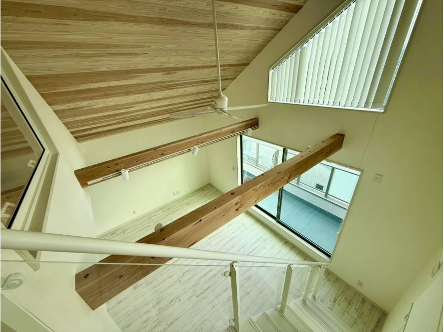 2階LDKは、勾配天井になっておりまして開放的なお家になっております。