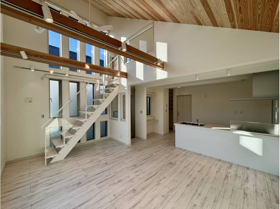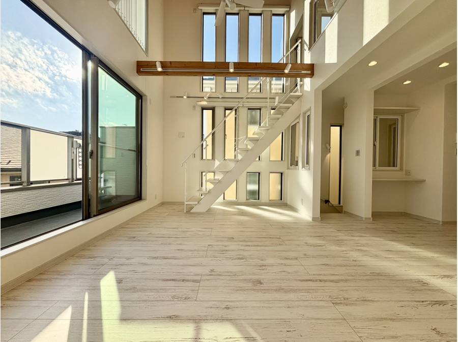 長柄エリアに新築戸建が登場しました。約16.6帖の広々としたLDKに加え、固定階段付きのロフトが備わった機能的な住空間が魅力的です。天井の高さや大きな窓の設計にこだわり、明るく開放的なリビングは家族が自然と集まる居心地の良い空間を提供します。