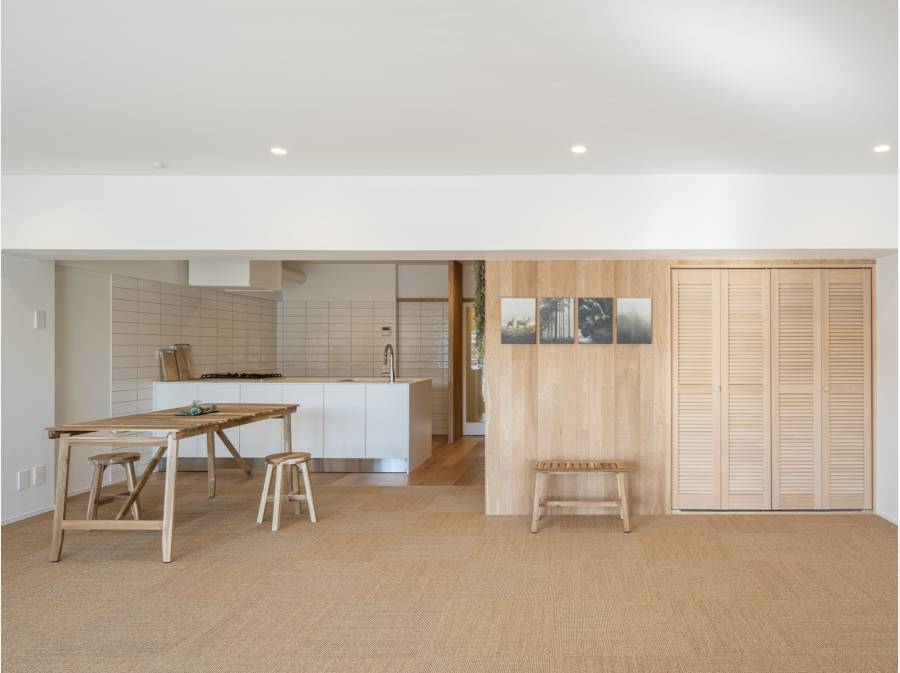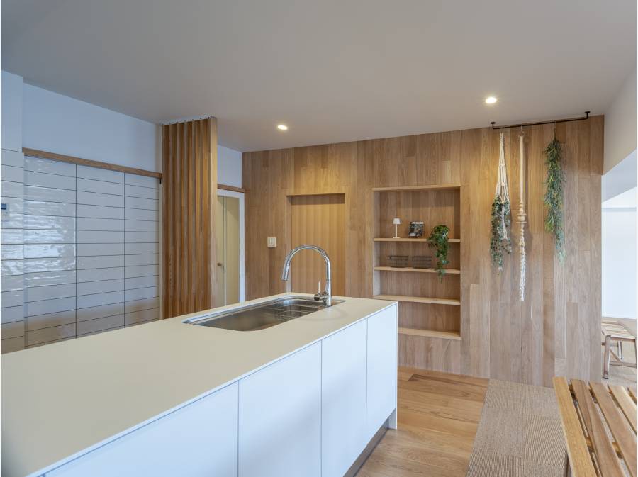 木に包まれているような温もり溢れるLDKは約24帖もの広さを誇り、視線を遮らないオープンキッチンがその美しい空間に溶け込みます。
