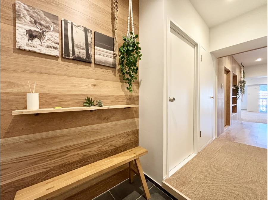 室内は木の温もりとニュートラルなトーンで統一され、余白を活かしたデザインが住む人の感性を豊かに引き立てます。広々としたLDKは光が奥まで届き、家事動線も整った便利な造りが魅力です。