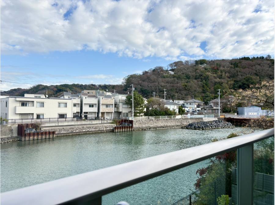 バルコニーから田越川の望むリバービュー!