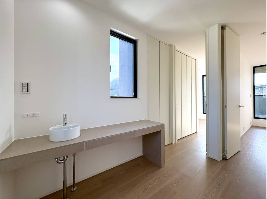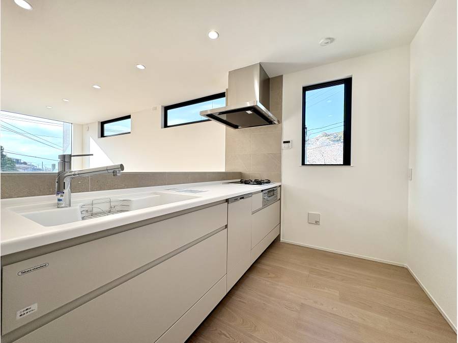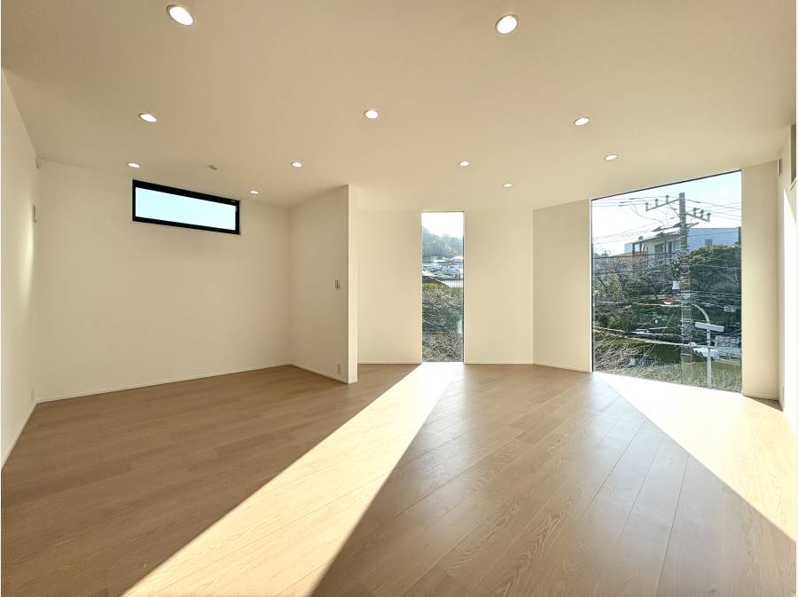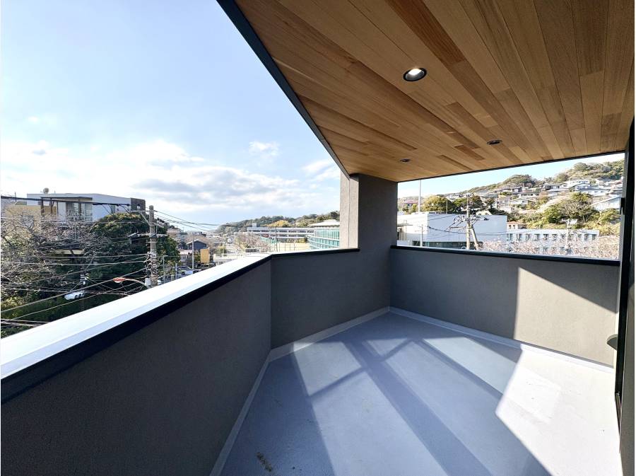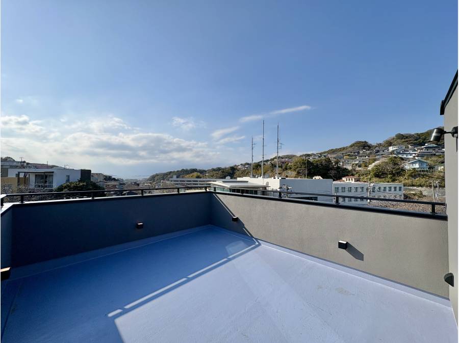 この物件の最大の特長は、LDKとルーフバルコニーから楽しめる海の眺望です。約20.3帖の広々としたリビング・ダイニング・キッチンは、家族が集う中心として開放感にあふれています。また、最上階のルーフバルコニーでは、葉山の海風を感じながらプライベートな時間を楽しめる空間が広がります。