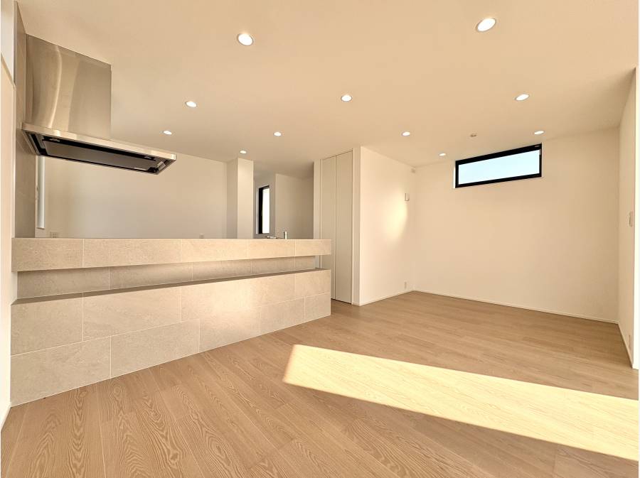 LDKとルーフバルコニーから広がる海の眺め。堀内で空と海に包まれる生活を。約20.3帖の広々としたLDKが心地よさを演出する3LDK。
