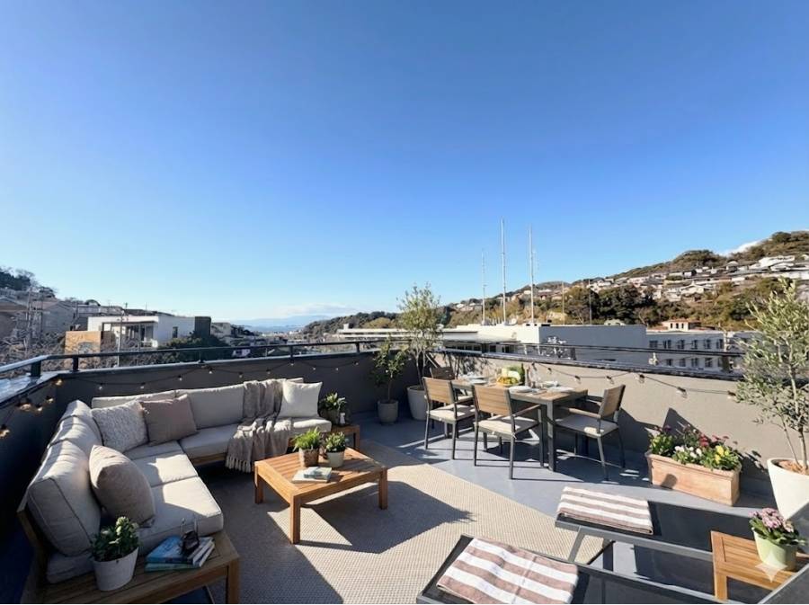 葉山堀内に新たに誕生した、新築邸宅のご案内です。この邸宅の魅力は、何といってもその眺望です。大型のルーフバルコニーからは、2方向に広がる海を贅沢に楽しむことができます。
