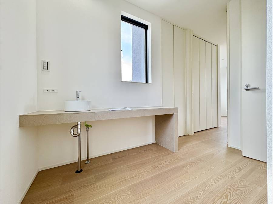 洗面室は収納が豊富で、パウダールームとしても活用いただけます。