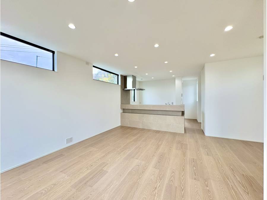 20帖のLDKには大きな窓があり、南西からの陽光がたっぷりと差し込み、明るく開放的な空間を演出します。