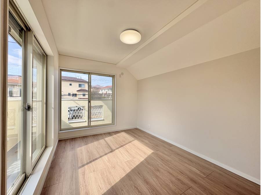 前面道路の幅員は5.8mあり、大きさと開放感を兼ね備えた住宅です。