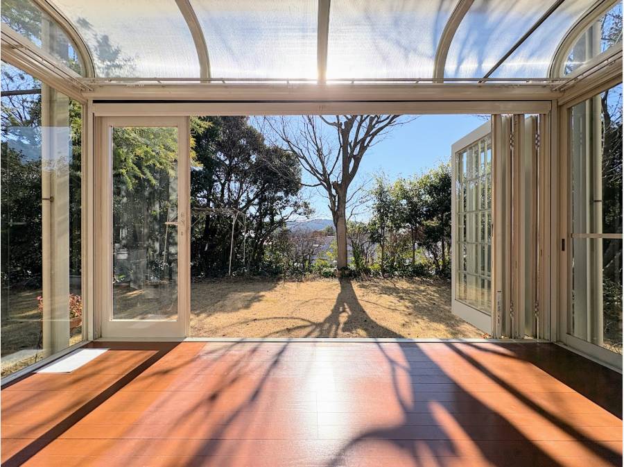 この邸宅の広いお庭では、海を遠くに望みながらガーデニングや家族、友人とのBBQなど、ゆったりとしたアウトドアライフを楽しむことができます。また、海を望むサンルームは四季折々の景色を眺めながらくつろげる特別な空間です。