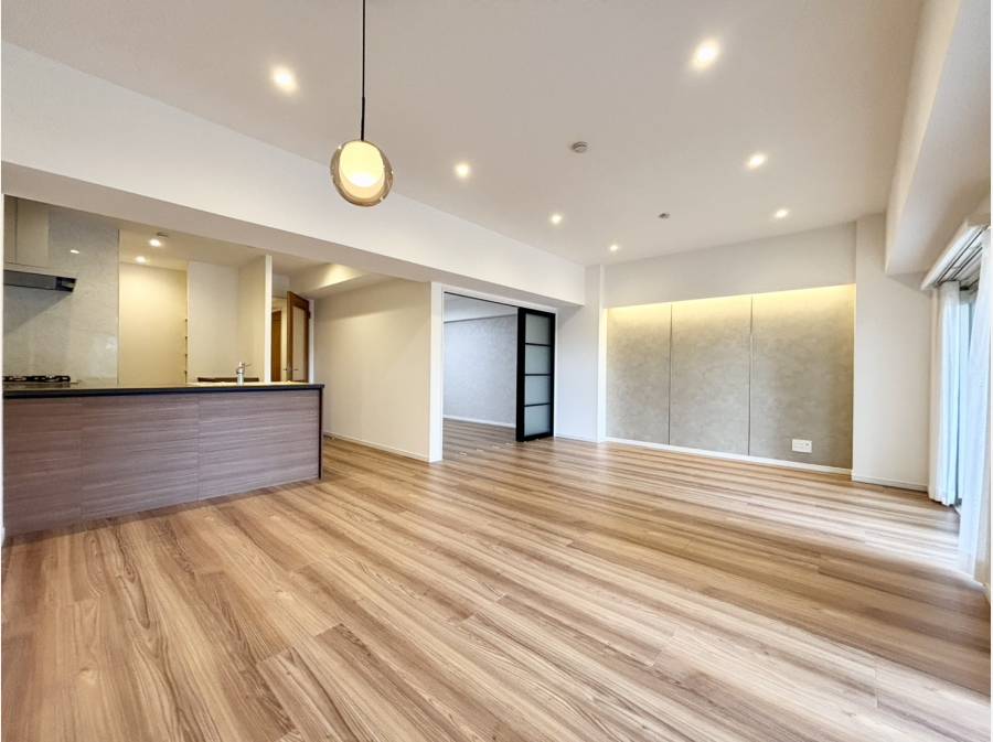 約20帖のLDKは、自然光が心地よく差し込み、日々の暮らしに開放感をもたらします。キッチン・浴室・洗面・トイレなど水回りは一新され、デザイン性と機能性を両立した住まいです。
