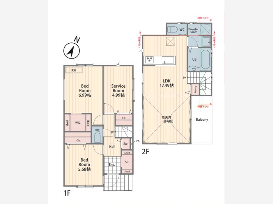 | 間取り | 2LDK + サービスルーム(4.99帖)+ウォークインクローゼット+シューズインクローク+パントリー 間取り・区画図を取り寄せる | 構造・階建て | 木造 地上2階 |