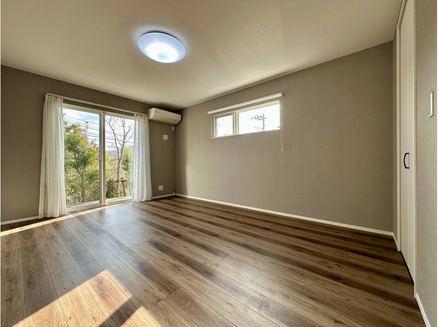 1階に居室が3部屋完備していて、約10帖の主寝室からウッドデッキへと出られ、葉山らしい景色をご覧いただけます