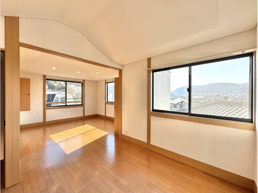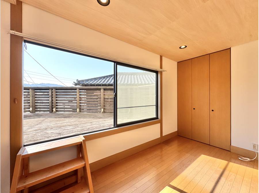 2階からは海を望み、ふとした瞬間に水平線が暮らしに寄り添う贅沢も。建物は旧ミサワホーム施工で、安心感のある構造を活かしながら美しく再生。