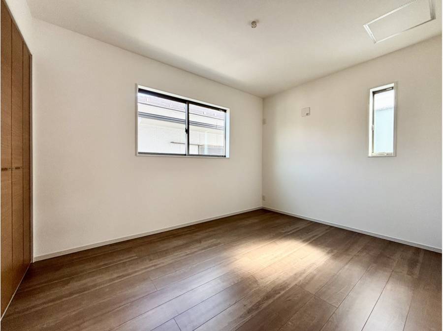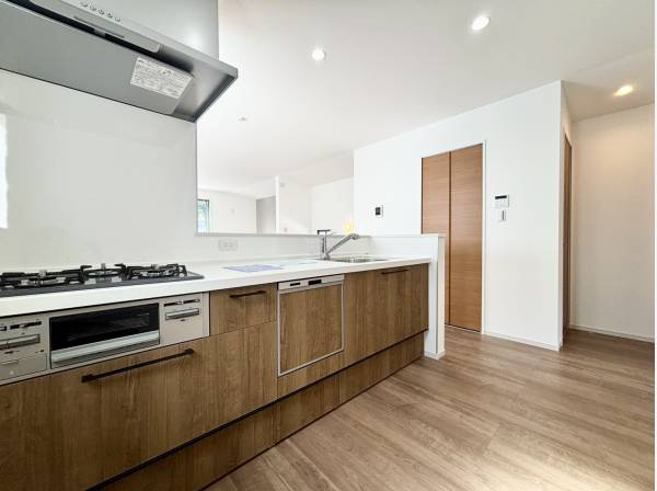 南西側約6m公道に面し、ゆとりある前面道路が開放感を演出。LDKは約20.4帖。数字以上に体感できる広がりがあり、過度な装飾に頼らないシンプルで洗練された空間設計です。パントリーやWICを備え、生活感を表に出さない収納計画も好印象。
