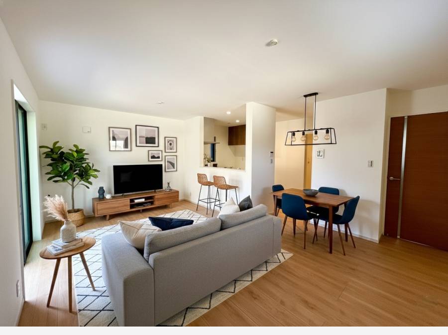 明るい光が差し込むリビングは、ナチュラルなインテリアが引き立つ心地よい空間です。逗子の穏やかな風を感じながら、新しい生活をぜひここで始めてみませんか。