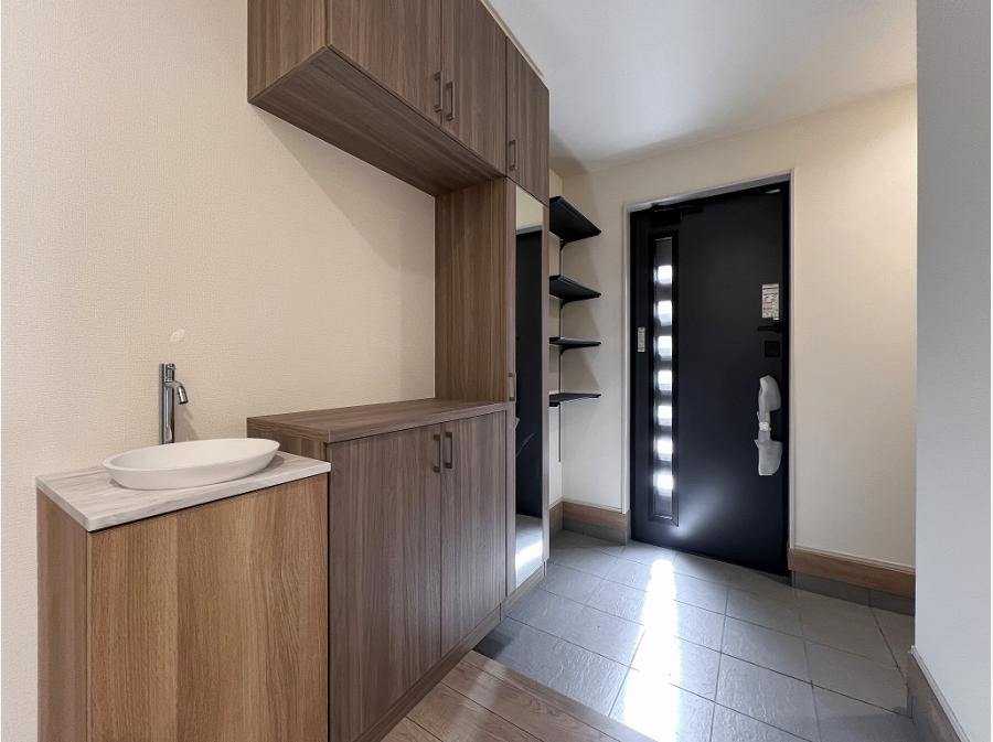独立した洗面コーナーは生活感をさらりと隠せるのが魅力です。