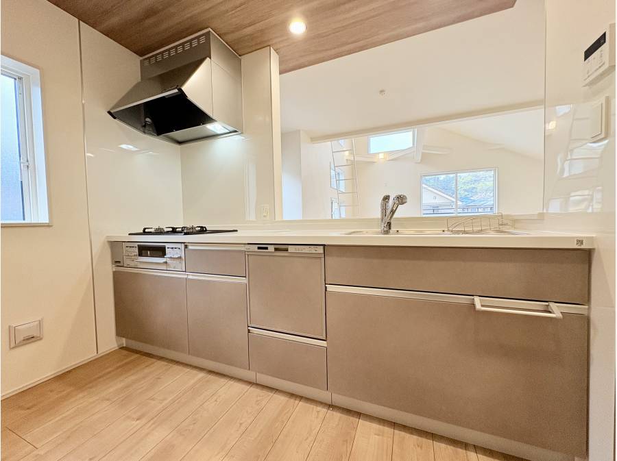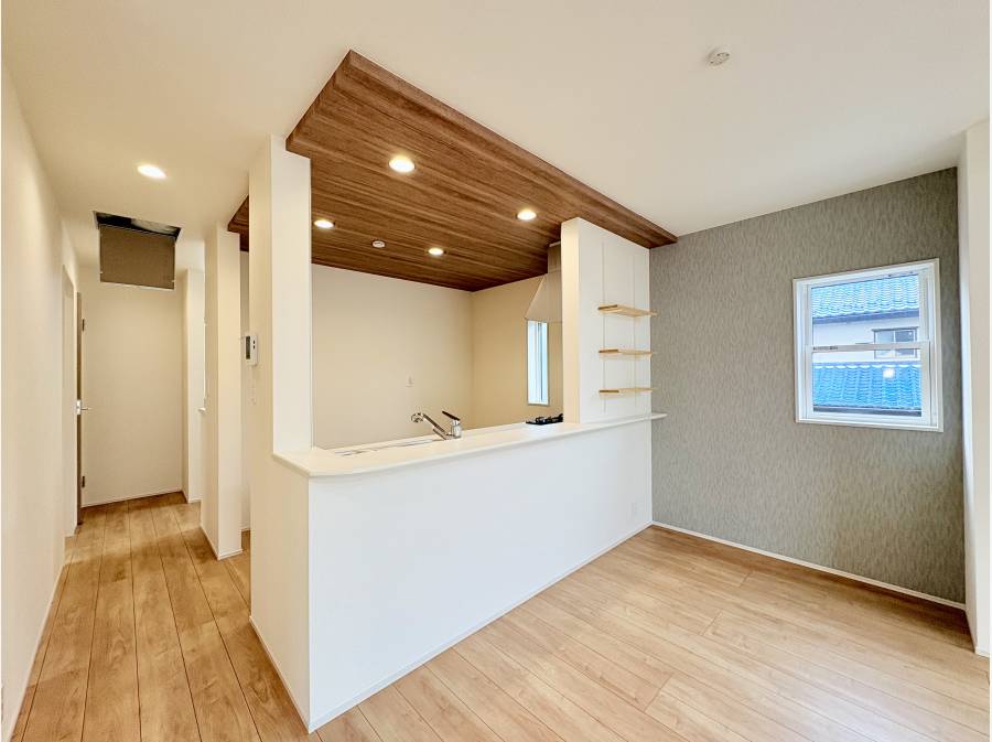さらに、キッチンスペースにはポップアップ天井を採用し、洗練された雰囲気を演出しています。