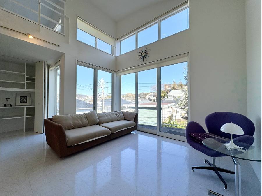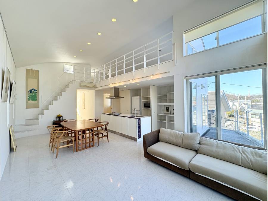 逗子の穏やかな街並みを望む贅沢な住宅。広々としたロフト完備。
