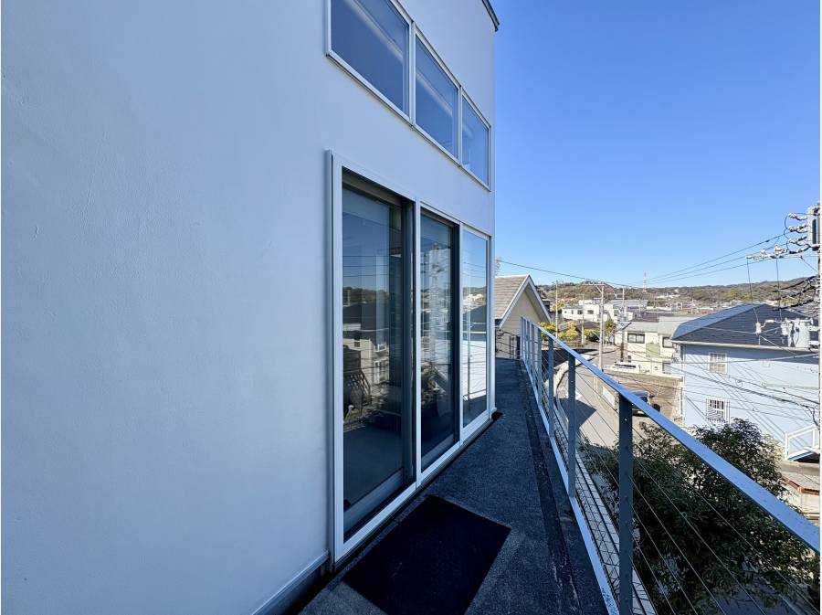 バルコニーから眺める眺望は空と逗子桜山の街並みを一望できる