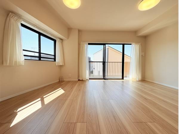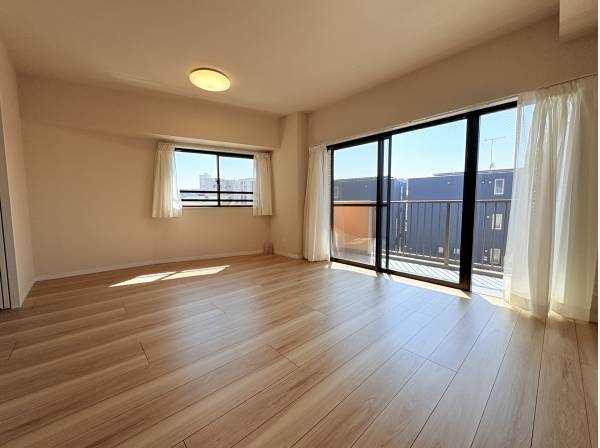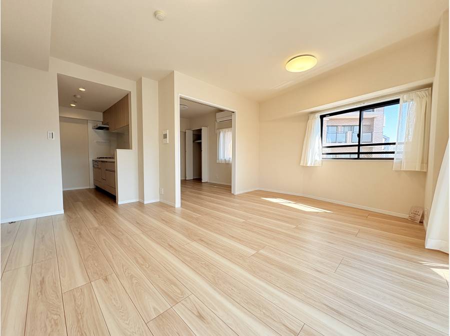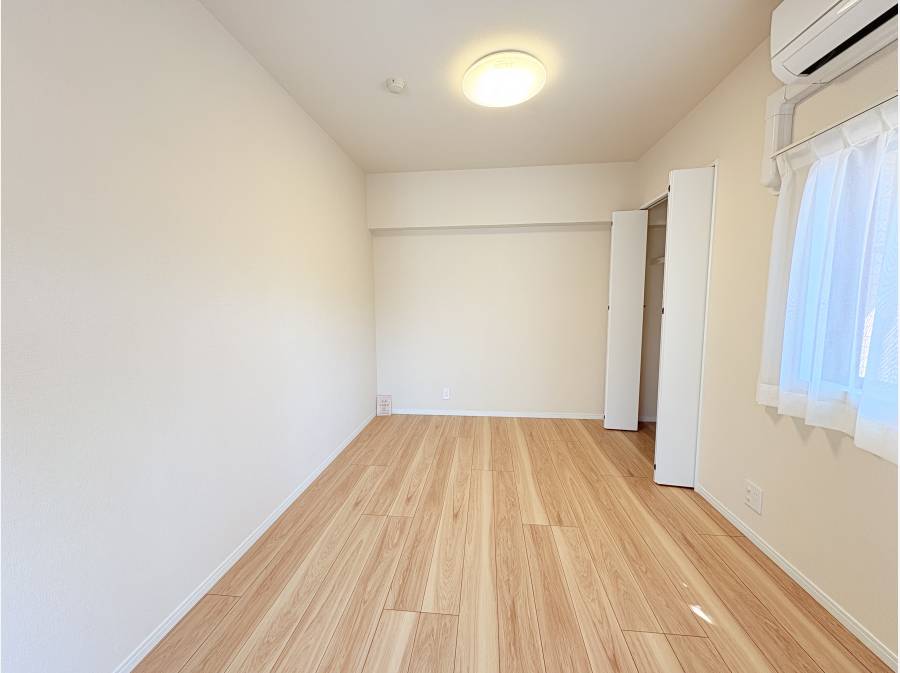 お部屋は主寝室として使える7帖の洋室に加え、4.7帖と5.8帖の部屋があり、収納スペースも充実しているため、広々とした空間をお楽しみいただけます。また、南東向きの窓からはたっぷりと日差しが差し込み、心地よい住環境です。