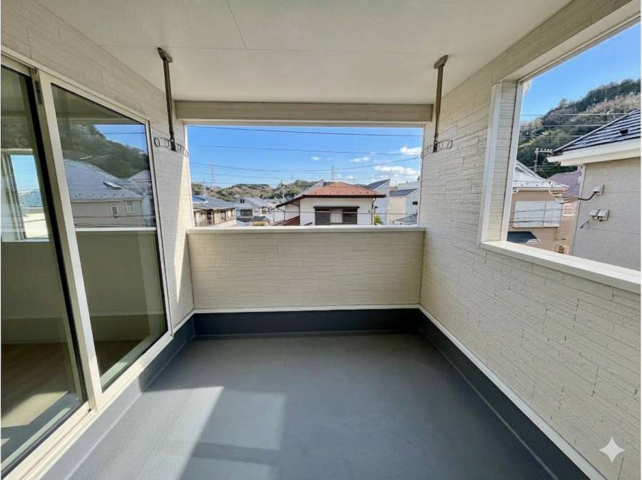 大型の屋根付きバルコニーがある暮らし!