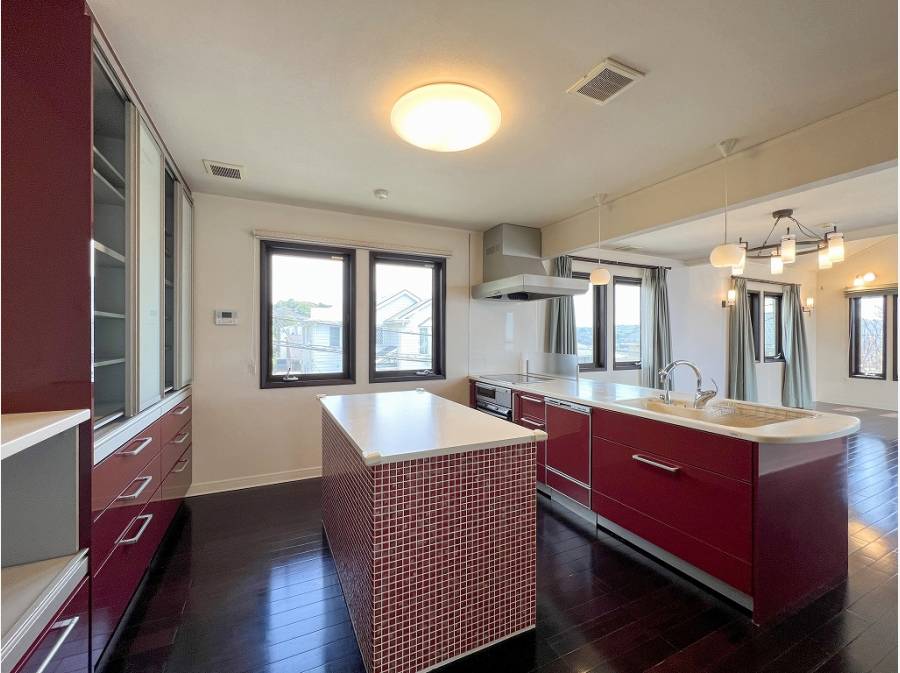 オープンキッチンやウッドデッキへと抜ける開放感が心地良い空間です。