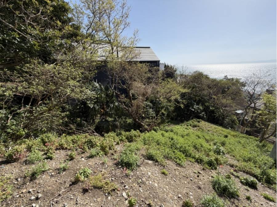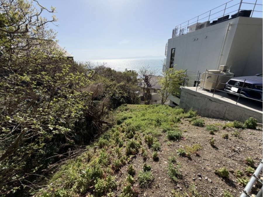 葉山の高台に位置し、海や富士山、伊豆半島、相模湾を望む眺望が広がります。敷地面積は約333.69㎡(100.94坪)です。