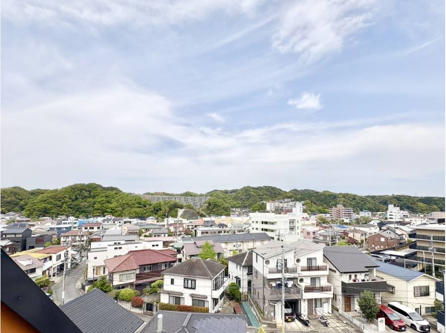 建物は高台のロケーションに位置しており、逗子の街並みと緑を望む開放的な眺望をお楽しみいただけます。
