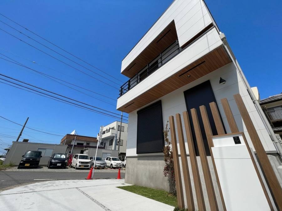 角地に建つ新築住宅は、住むだけでなく事務所や店舗にも活用したくなる魅力的な物件です。駐車場は2台分で出し入れもスムーズ。人が集まる便利な立地です。