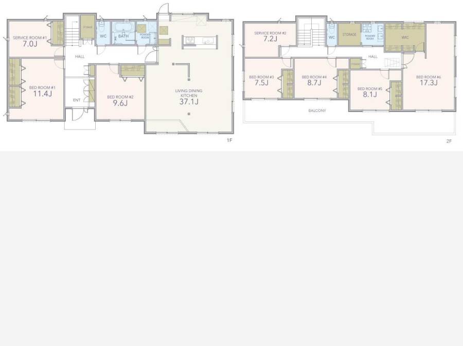 | 間取り | 6LDK + 2サービスルーム(7.2帖+7.0帖)+ウォークインクローゼット+納戸 間取り・区画図を取り寄せる | 構造・階建て | 軽量鉄骨造 地上2階 |