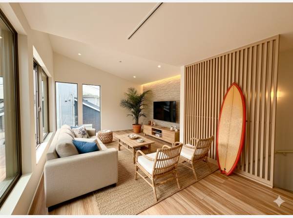 【茅ヶ崎駅まで徒歩20分】 ~陽光と海風に包まれる邸宅~ 海まで徒歩12分、開放LDKで叶える上質な家族時間!