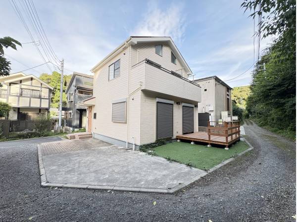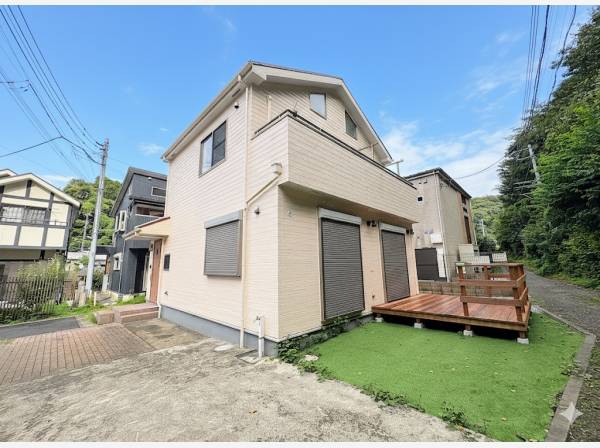 緑に囲まれたウッドデッキ付きの家、「鎌倉」駅から徒歩22分。