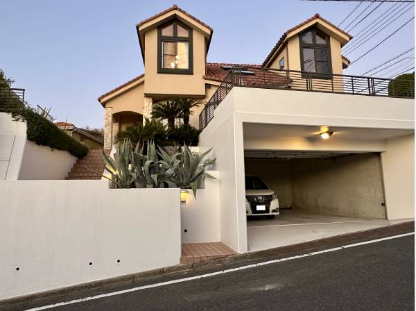 大型ガレージを有する~海を望むリゾートスタイルの家~約90坪南東角地